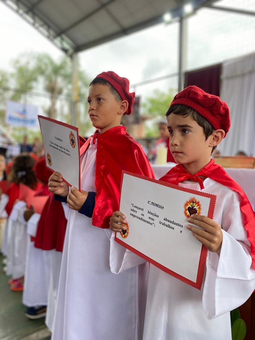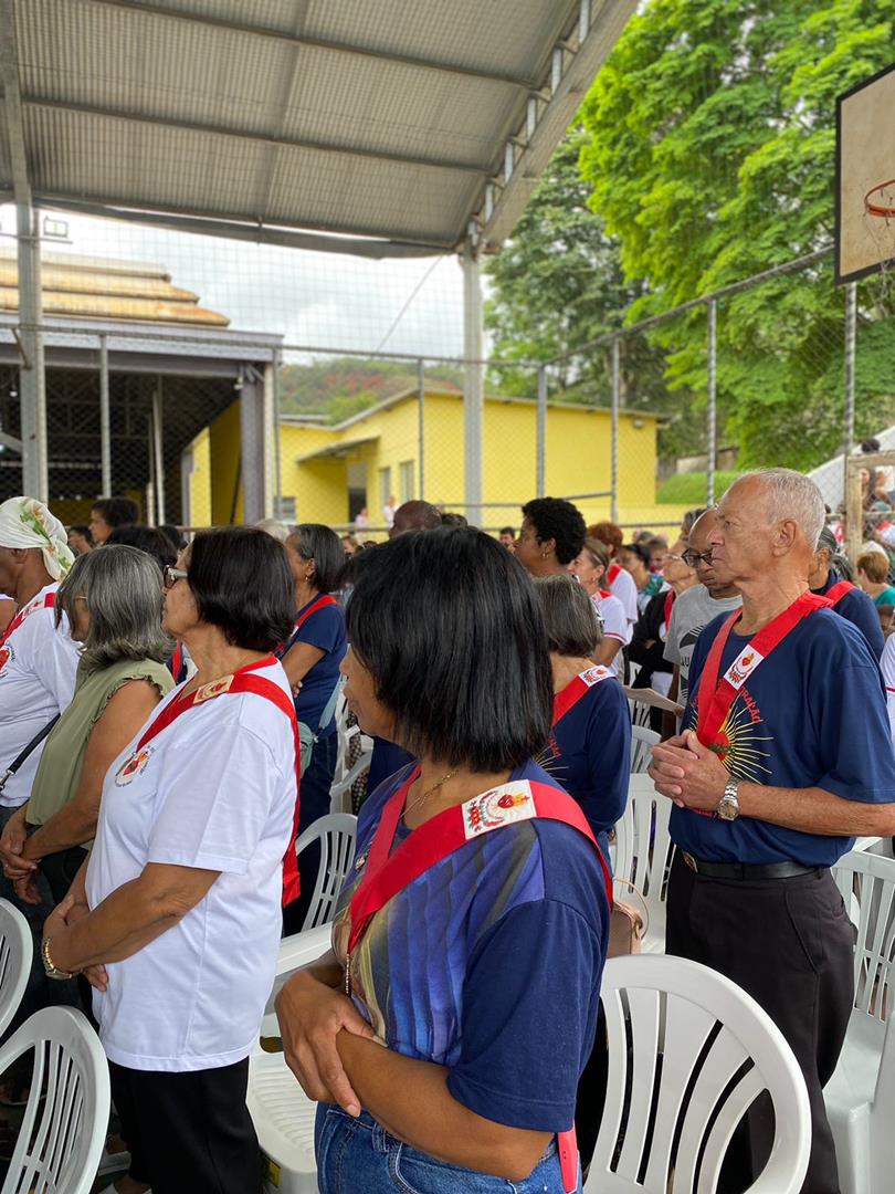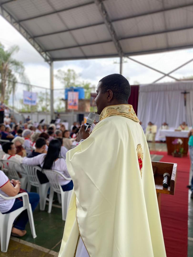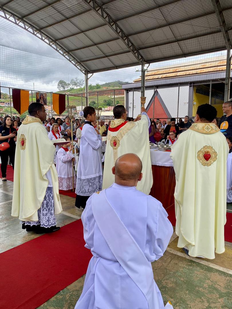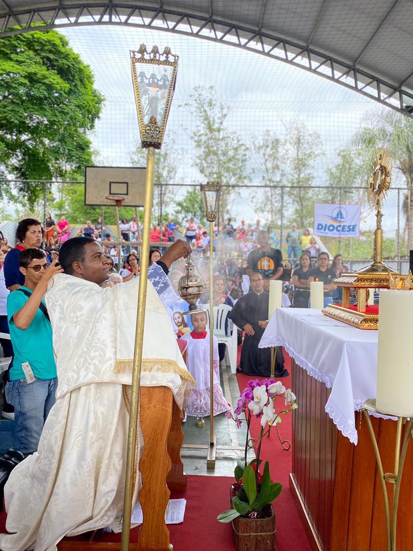 O carinho da acolhida já indicava que seria um domingo memorável. Jovens dos grupos paroquiais e a Infância Missionária, acolheram os visitantes nos ônibus, Vans e carros particulares orientando com muita presteza, educação e amor em estar servindo. E este zelo e presteza ocorreu durante todo evento de todos os agentes pastorais que estavam servindo. O Café foi servido no Salão Pastoral da Igreja Matriz e estava preparado com esmero no ambiente com arranjos florais, um andor com a imagem de Cristo Rei, banda de Música alegrando nossos ouvidos… Riqueza da Partilha das quitandeiras das comunidades locais…Na Matriz o andor principal que saiu na procissão estava em uma beleza ímpar. As 9 h foi organizada a Procissão e que organização, a beleza das inúmeras bandeiras dos Grupos de Apostolado inundou as ruas de Bela Vista com os Soldados de Cristo perfilados, leigos e leigas que se dedicam a oração, rezando e canto todo percurso com a Coordenação do Pároco e Coordenador de Pastoral, anfitrião do dia e do Pe. José Ricardo dos Santos, Assessor Diocesano e Regional do Apostolado da Oração. A chegada na Escola José Modesto DÁvila mostrou que toda Comunidade eclesial e local estava envolvida e sincronizada. O espaço litúrgico estava impecavelmente preparado e o Coral Divina Clave entoando com Maestria cantos de acolhida e se manteve sincronizado com a Adoração Eucarística e a Santa Missa. Após adoração e bênção do Santíssimo como oferta Ação de Graças a Santa Missa foi celebrada pelo Pe. José Ricardo dos Santos, concelebrada pelo Pe. Gustavo, Pe. Marianos, CICM, auxiliado pelos Diáconos Permanentes Eduardo Gomes, Diácono Marconi, Diácono Geraldo Afonso. E fechando com chave de ouro um delicioso almoço com fartura entregue a todos.