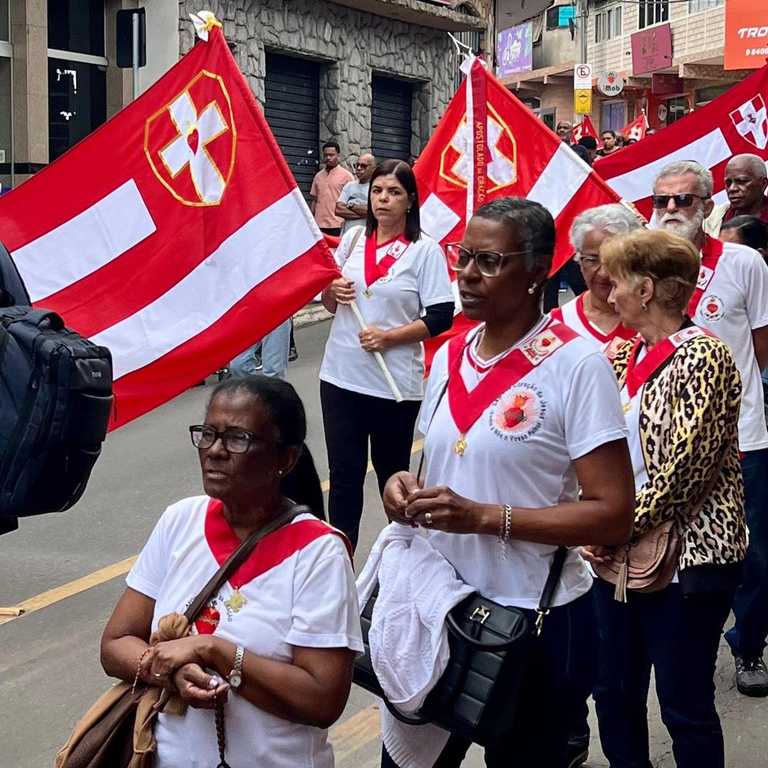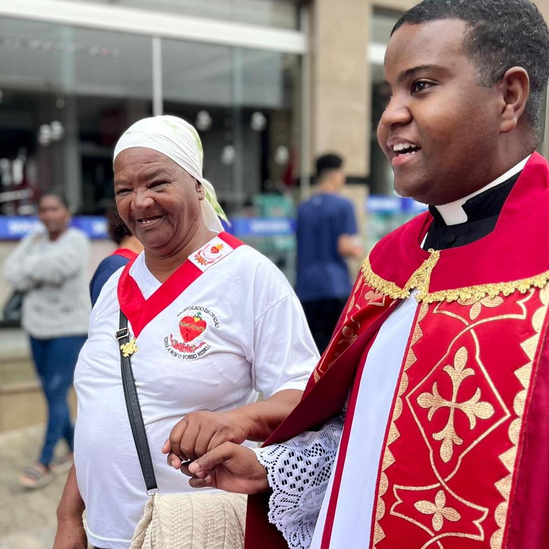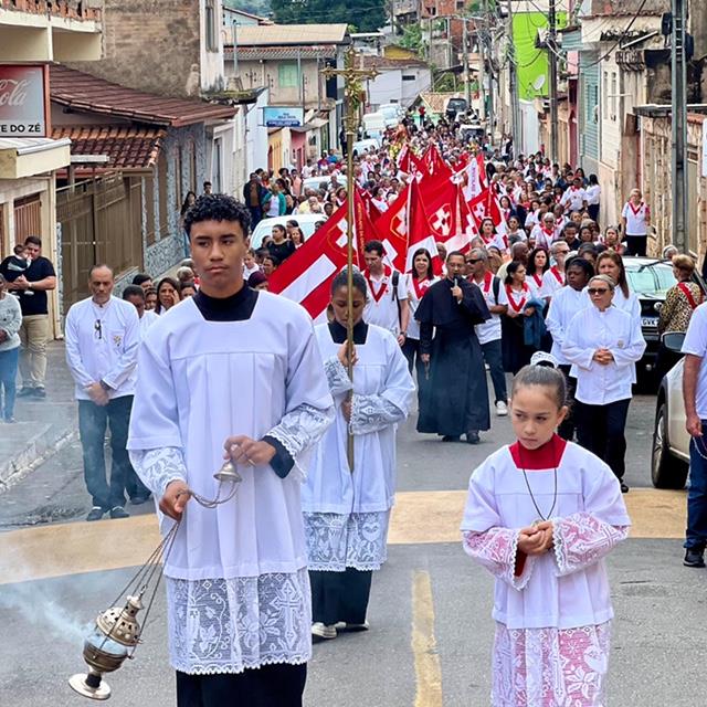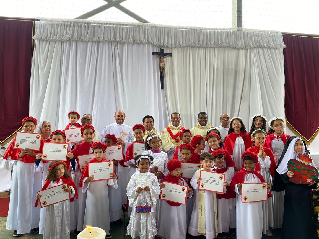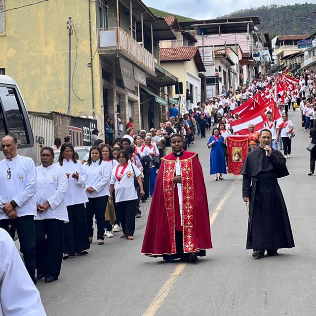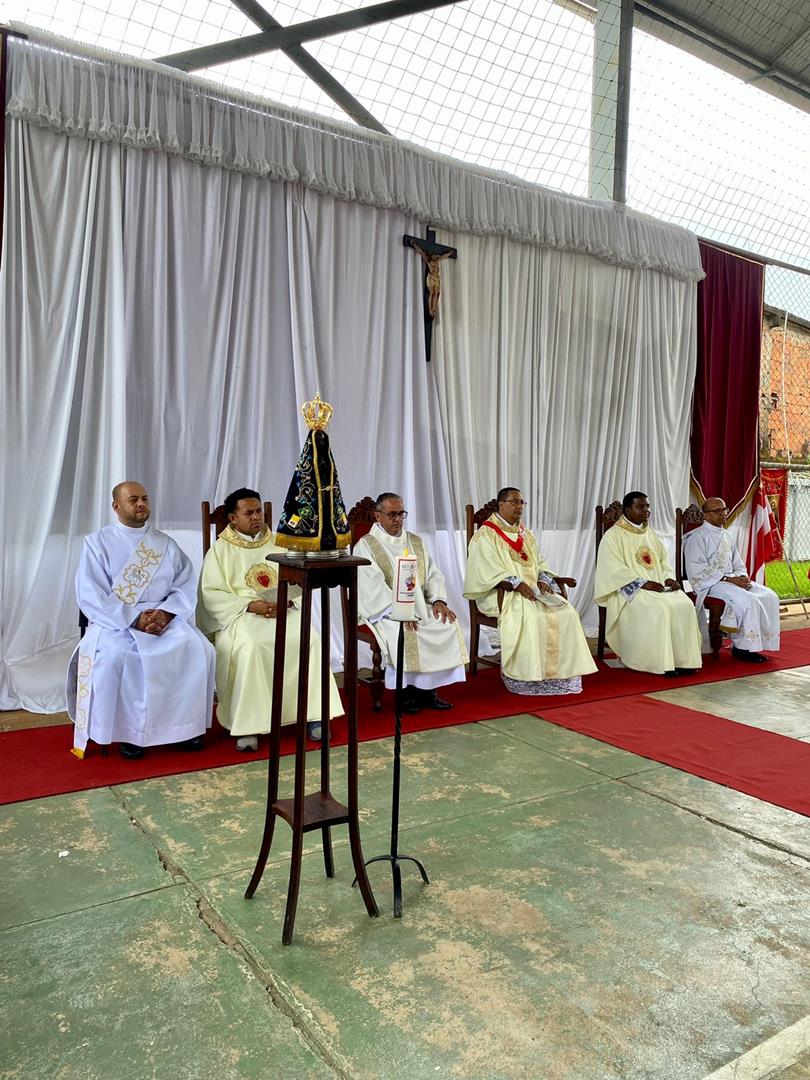 O carinho da acolhida já indicava que seria um domingo memorável. Jovens dos grupos paroquiais e a Infância Missionária, acolheram os visitantes nos ônibus, Vans e carros particulares orientando com muita presteza, educação e amor em estar servindo. E este zelo e presteza ocorreu durante todo evento de todos os agentes pastorais que estavam servindo. O Café foi servido no Salão Pastoral da Igreja Matriz e estava preparado com esmero no ambiente com arranjos florais, um andor com a imagem de Cristo Rei, banda de Música alegrando nossos ouvidos… Riqueza da Partilha das quitandeiras das comunidades locais…Na Matriz o andor principal que saiu na procissão estava em uma beleza ímpar. As 9 h foi organizada a Procissão e que organização, a beleza das inúmeras bandeiras dos Grupos de Apostolado inundou as ruas de Bela Vista com os Soldados de Cristo perfilados, leigos e leigas que se dedicam a oração, rezando e canto todo percurso com a Coordenação do Pároco e Coordenador de Pastoral, anfitrião do dia e do Pe. José Ricardo dos Santos, Assessor Diocesano e Regional do Apostolado da Oração. A chegada na Escola José Modesto DÁvila mostrou que toda Comunidade eclesial e local estava envolvida e sincronizada. O espaço litúrgico estava impecavelmente preparado e o Coral Divina Clave entoando com Maestria cantos de acolhida e se manteve sincronizado com a Adoração Eucarística e a Santa Missa. Após adoração e bênção do Santíssimo como oferta Ação de Graças a Santa Missa foi celebrada pelo Pe. José Ricardo dos Santos, concelebrada pelo Pe. Gustavo, Pe. Marianos, CICM, auxiliado pelos Diáconos Permanentes Eduardo Gomes, Diácono Marconi, Diácono Geraldo Afonso. E fechando com chave de ouro um delicioso almoço com fartura entregue a todos.