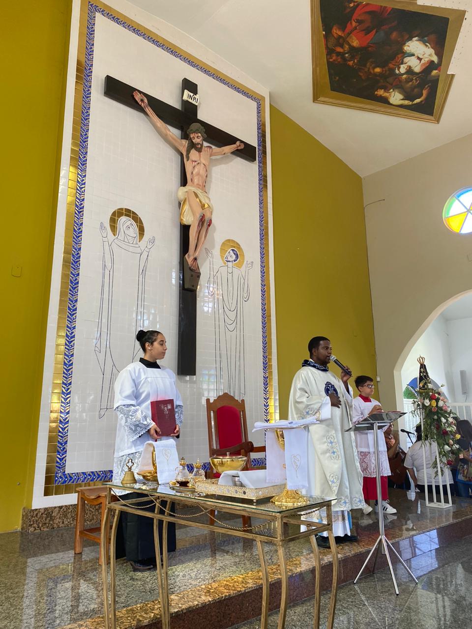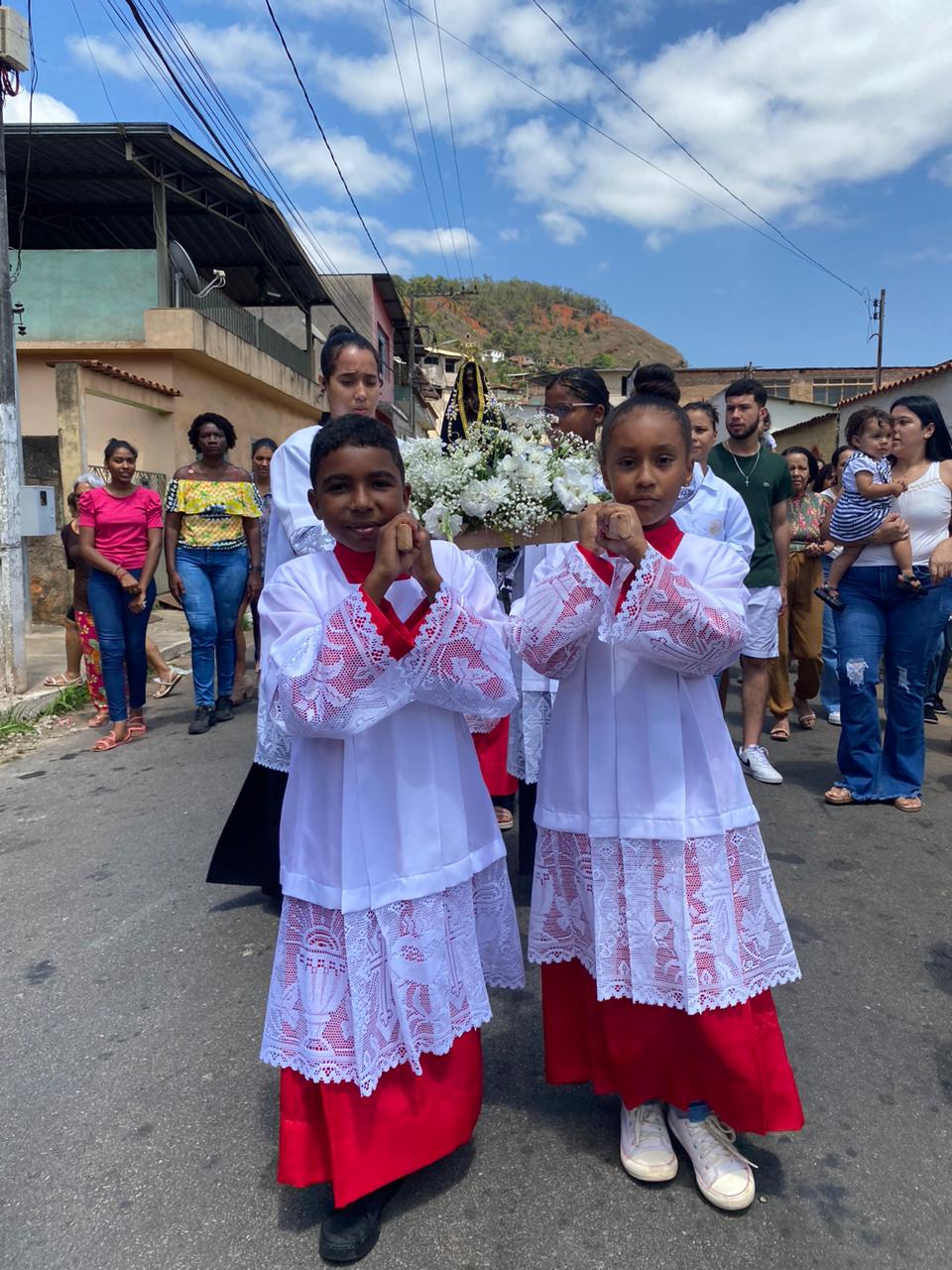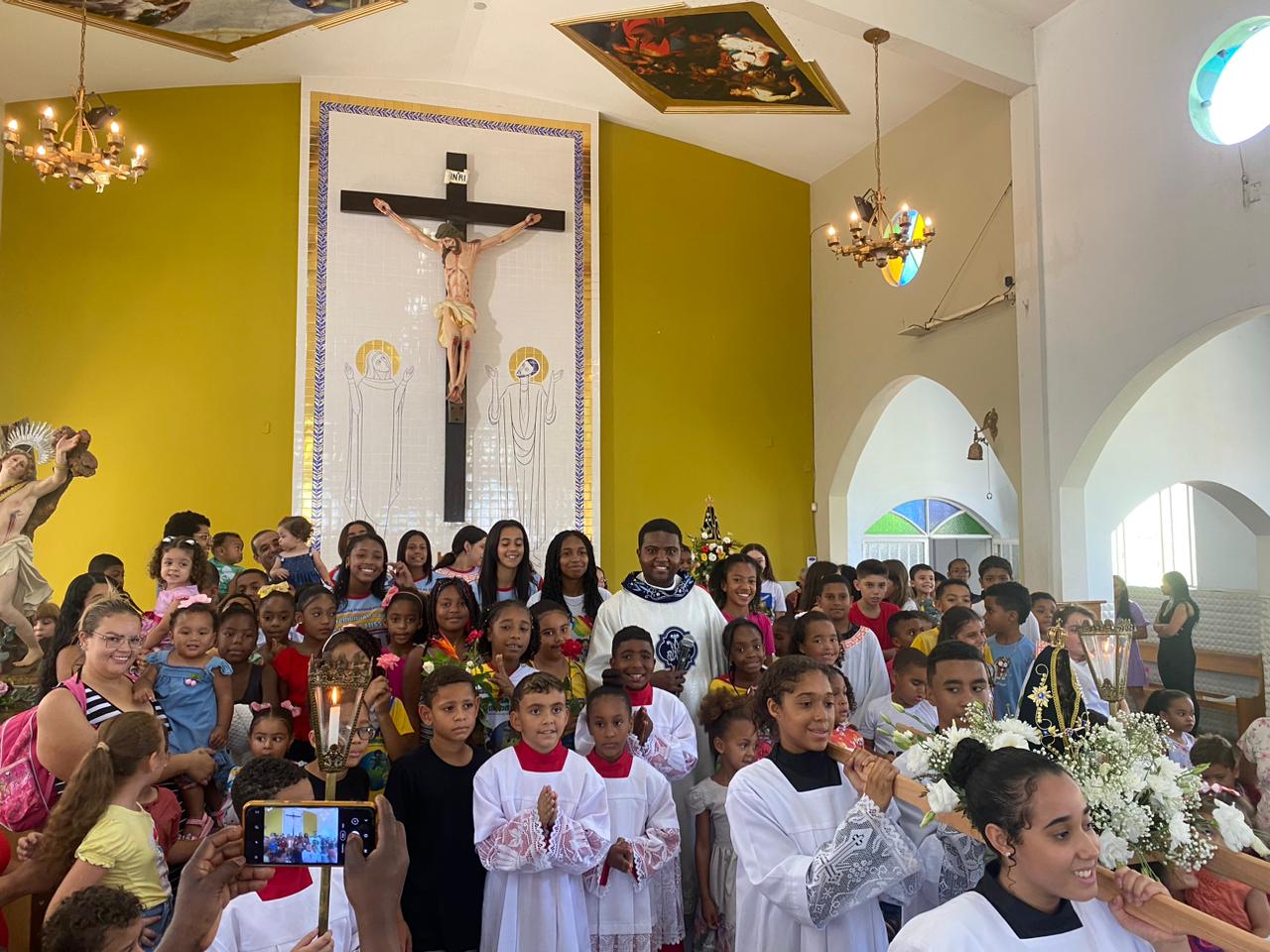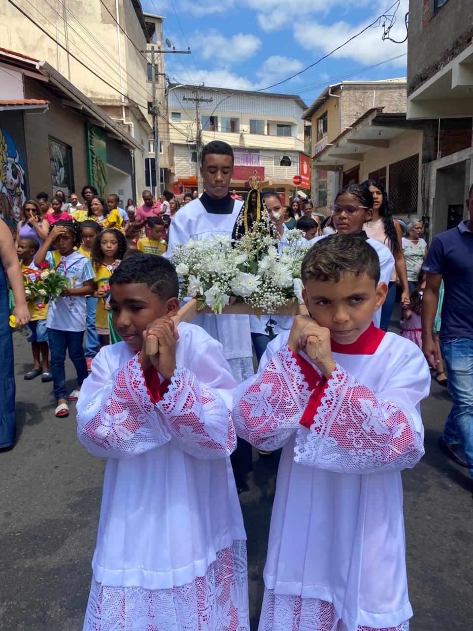 A celebração foi presidida pelo Pe. Gustavo, adm. Paroquial. No termino da celebração fizeram uma linda procissão. Neste dia que celebramos o dia das crianças pedimos a intercessão e proteção de Nossa Senhora Aparecida para todas as crianças.
