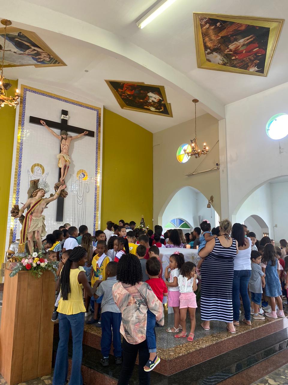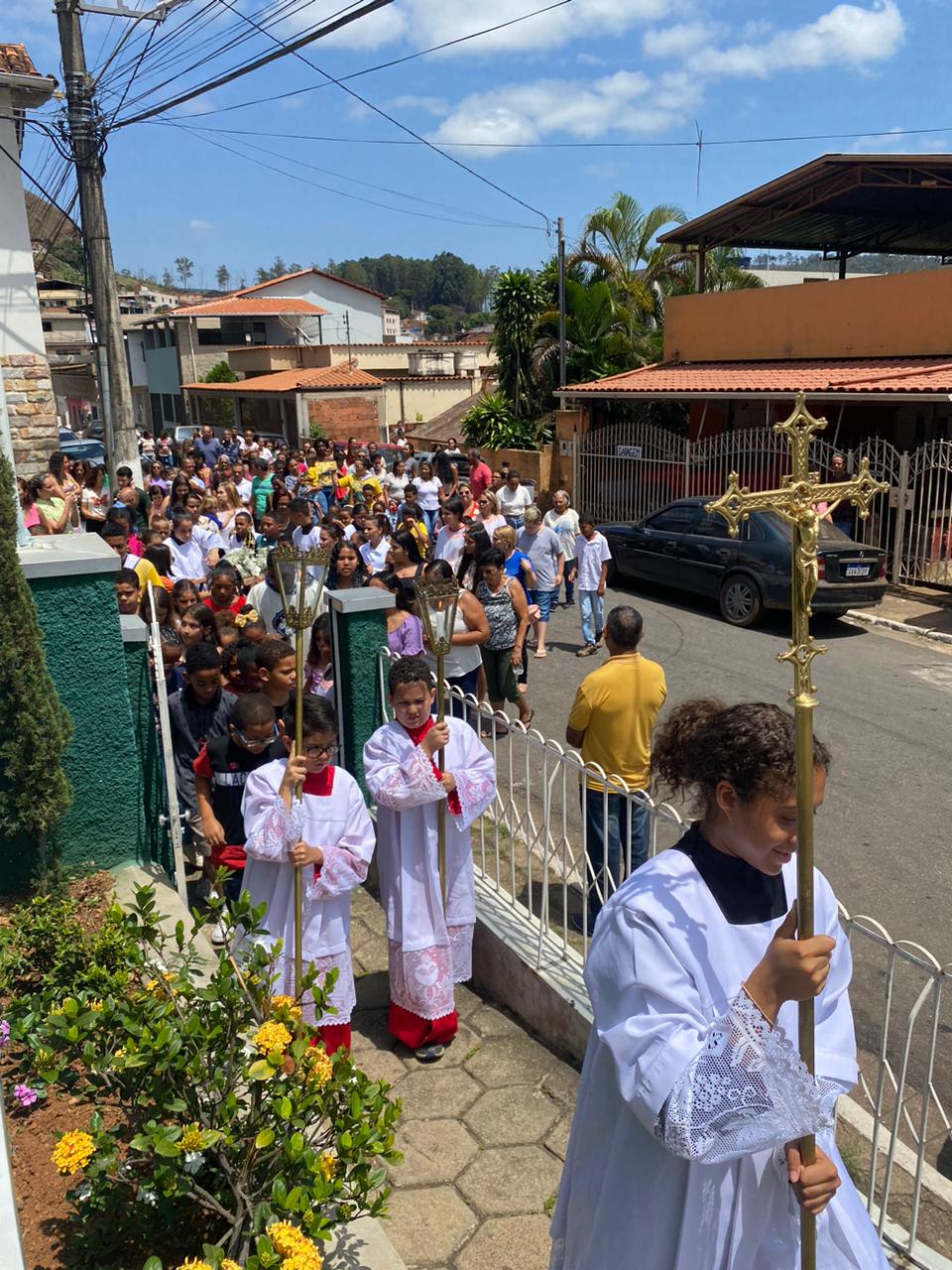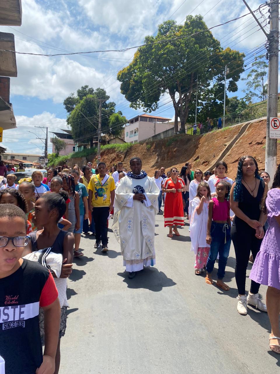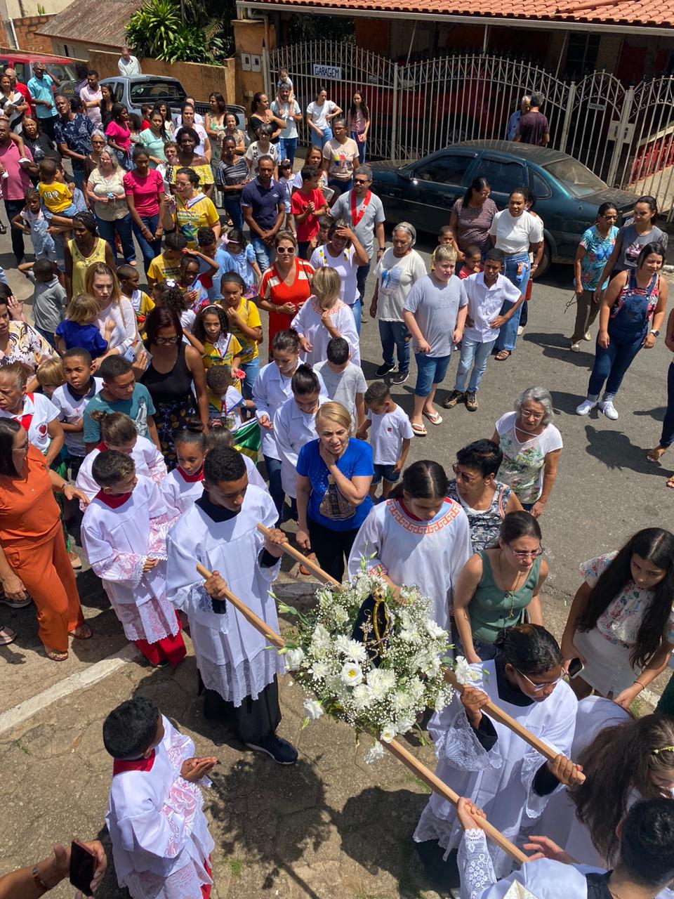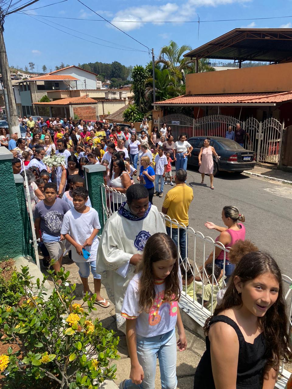 A celebração foi presidida pelo Pe. Gustavo, adm. Paroquial. No termino da celebração fizeram uma linda procissão. Neste dia que celebramos o dia das crianças pedimos a intercessão e proteção de Nossa Senhora Aparecida para todas as crianças.