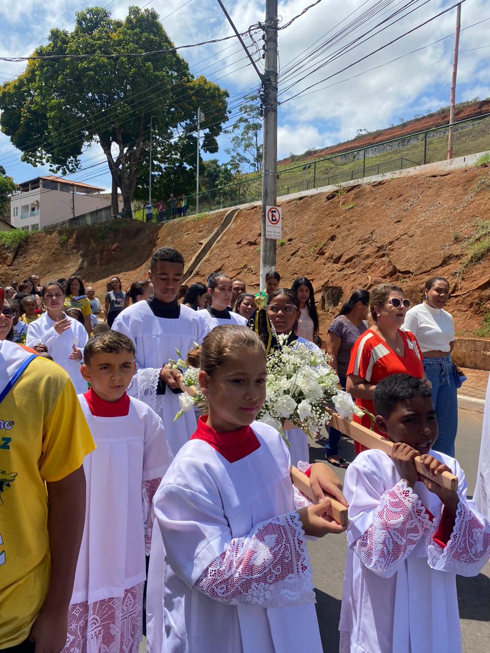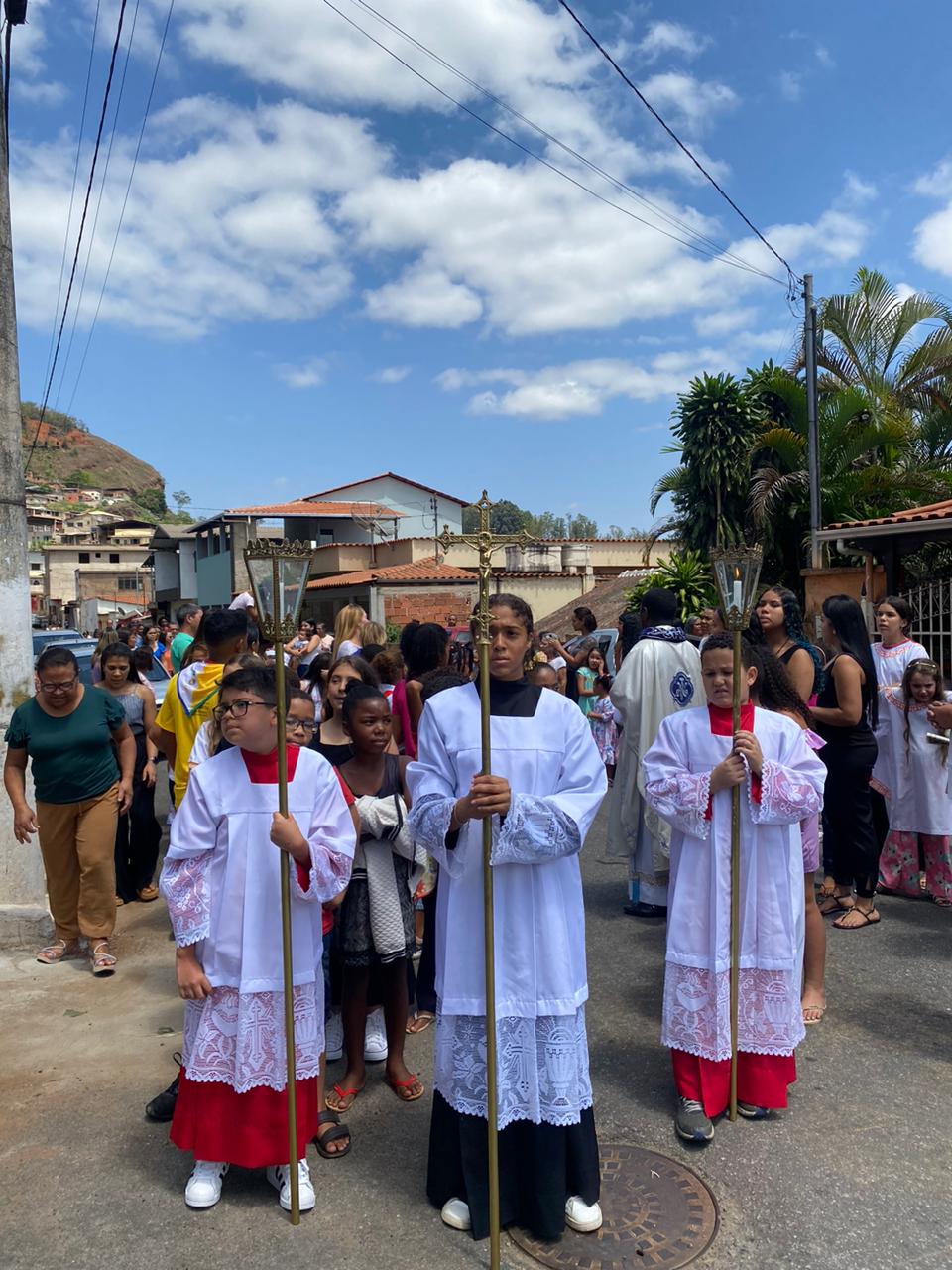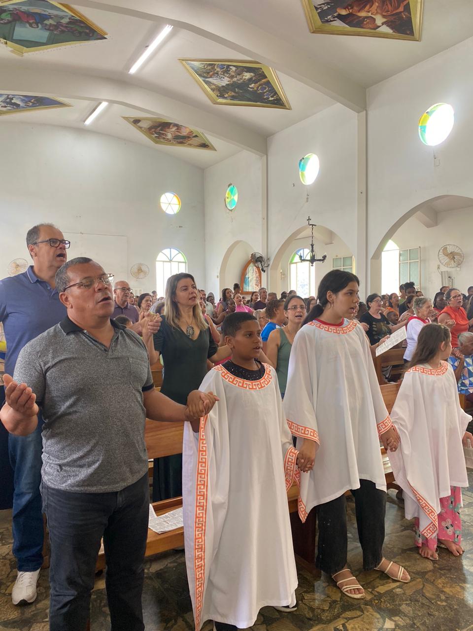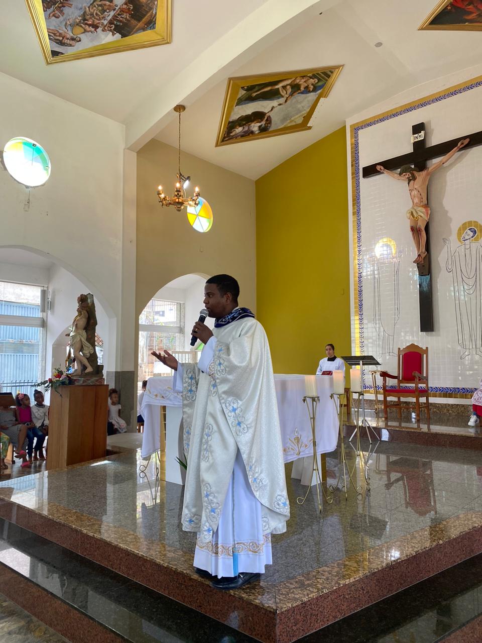 A celebração foi presidida pelo Pe. Gustavo, adm. Paroquial. No termino da celebração fizeram uma linda procissão. Neste dia que celebramos o dia das crianças pedimos a intercessão e proteção de Nossa Senhora Aparecida para todas as crianças.