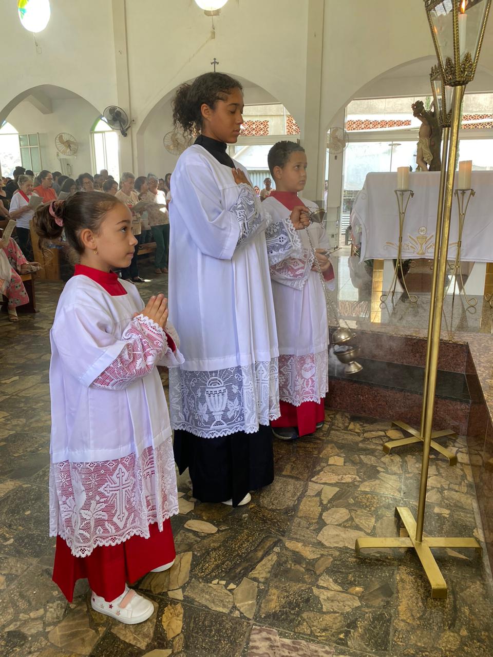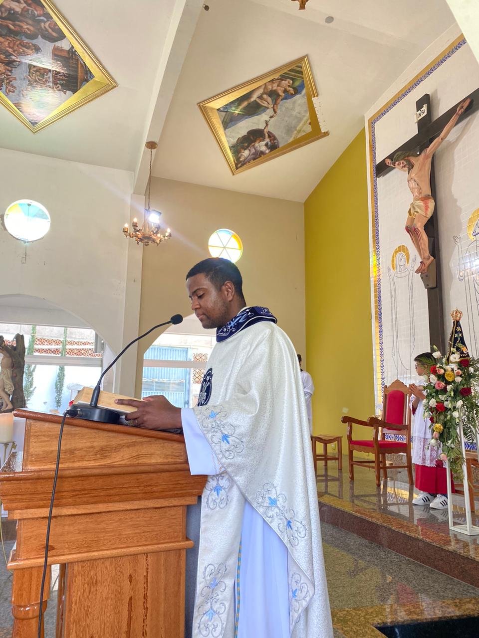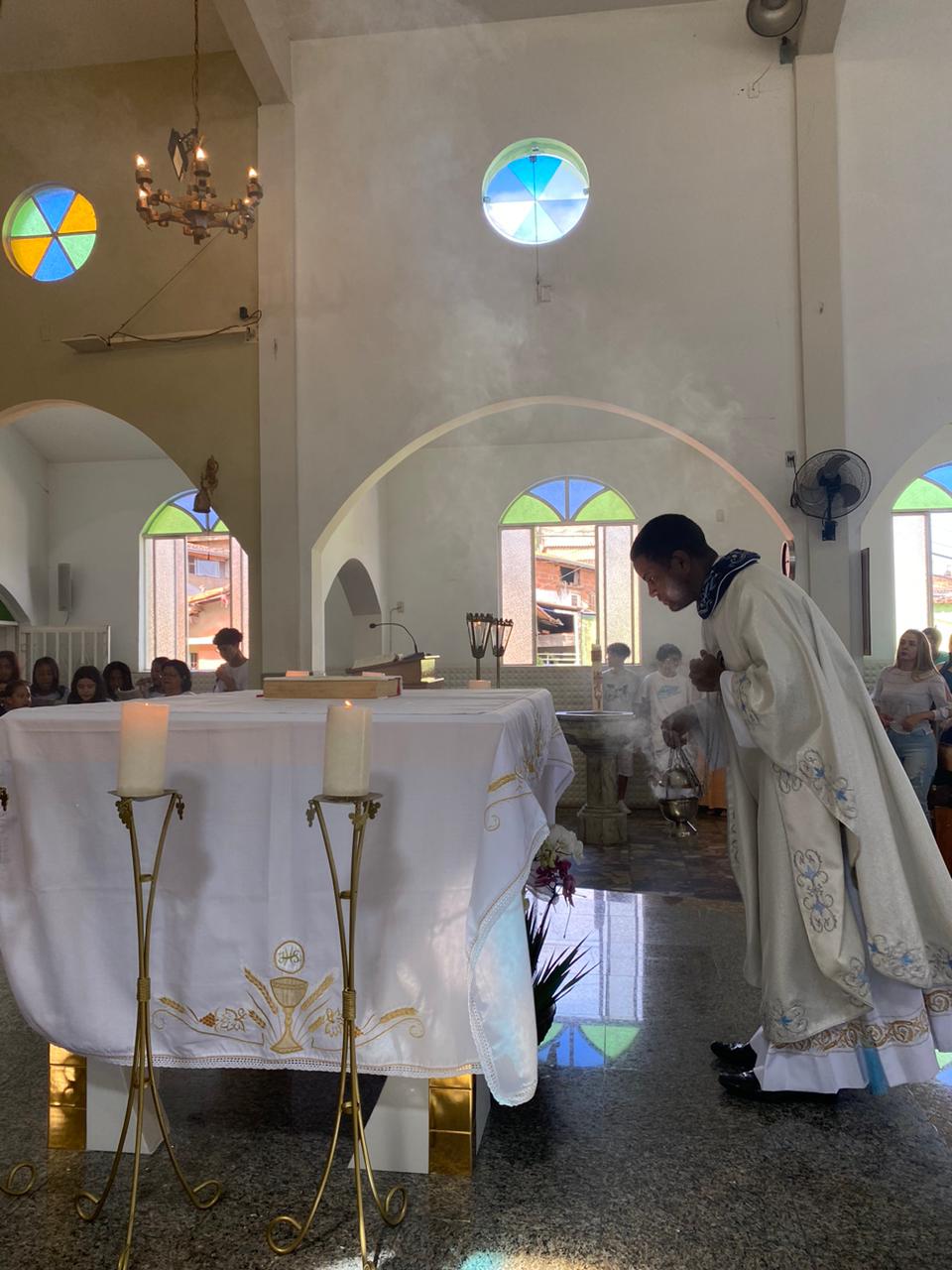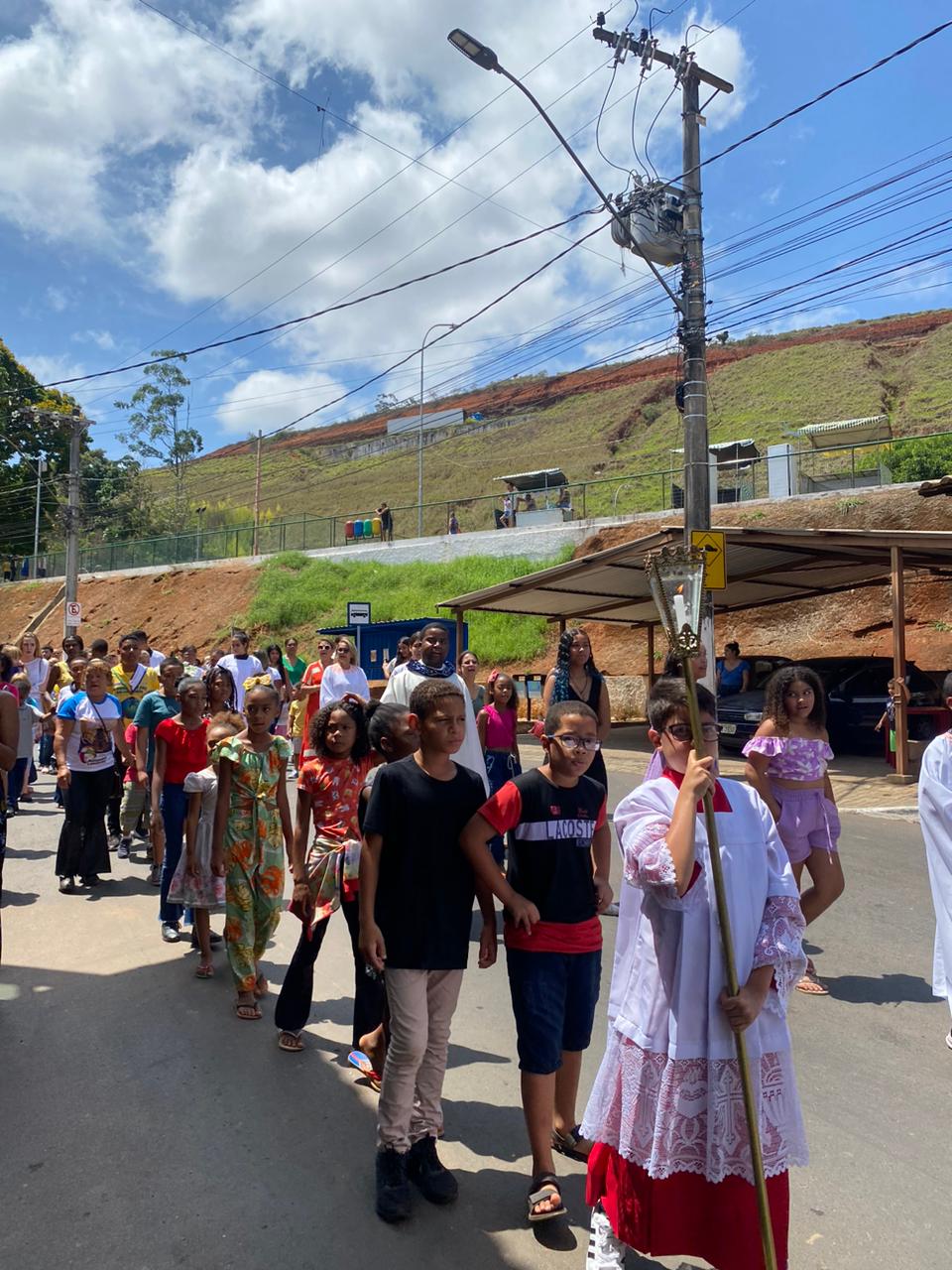 A celebração foi presidida pelo Pe. Gustavo, adm. Paroquial. No termino da celebração fizeram uma linda procissão. Neste dia que celebramos o dia das crianças pedimos a intercessão e proteção de Nossa Senhora Aparecida para todas as crianças.