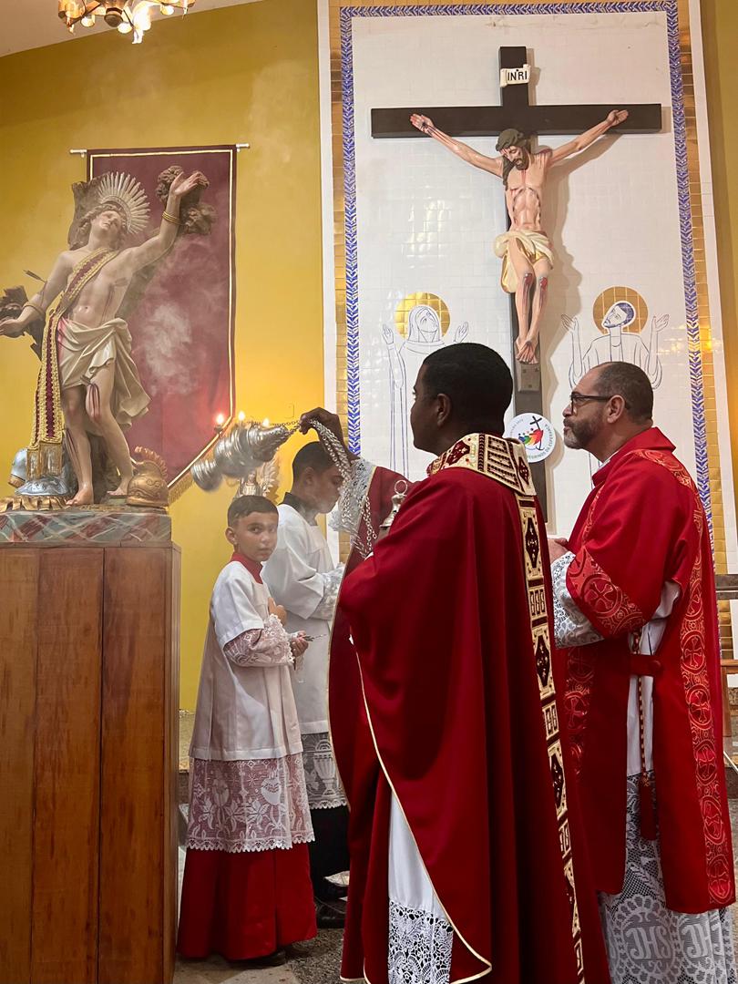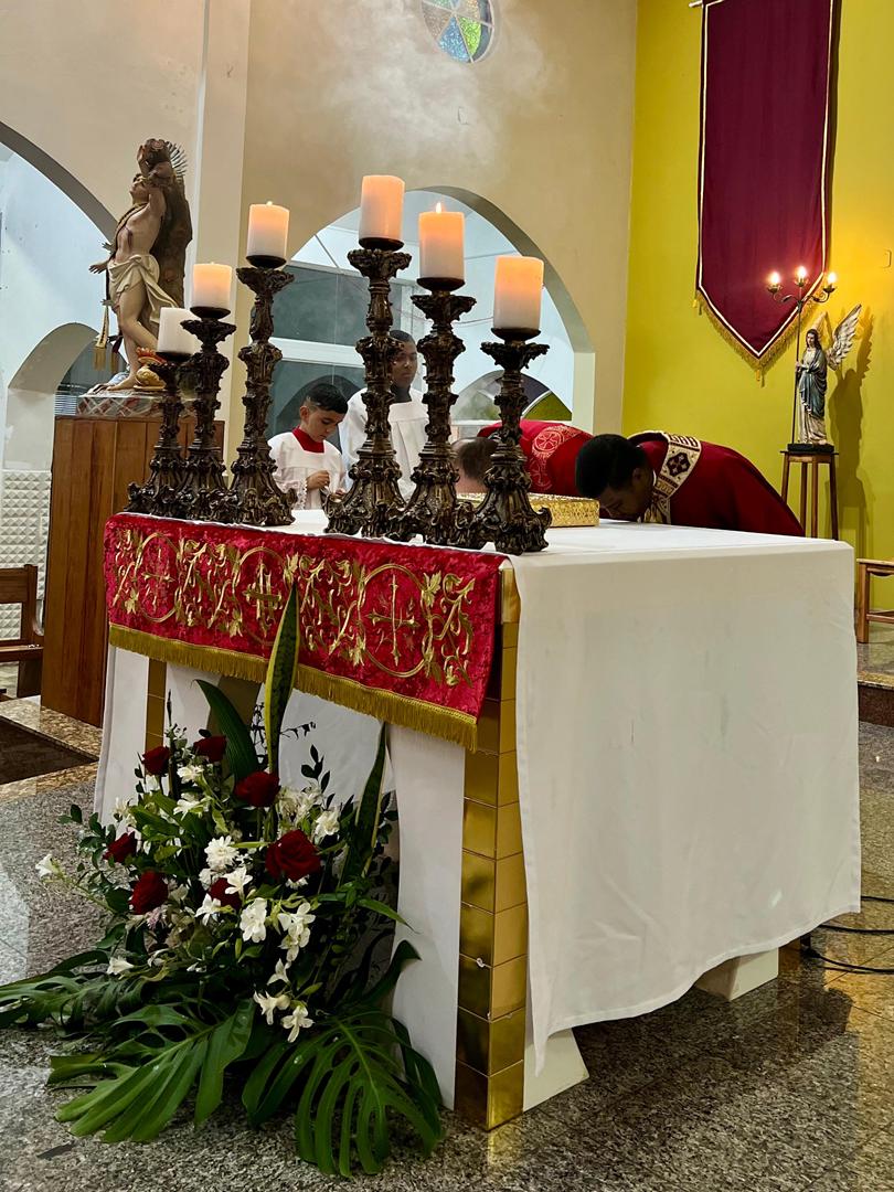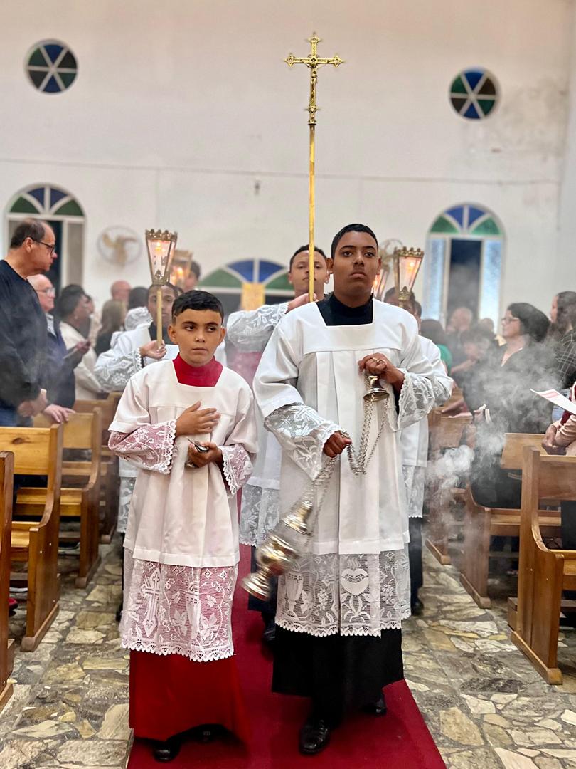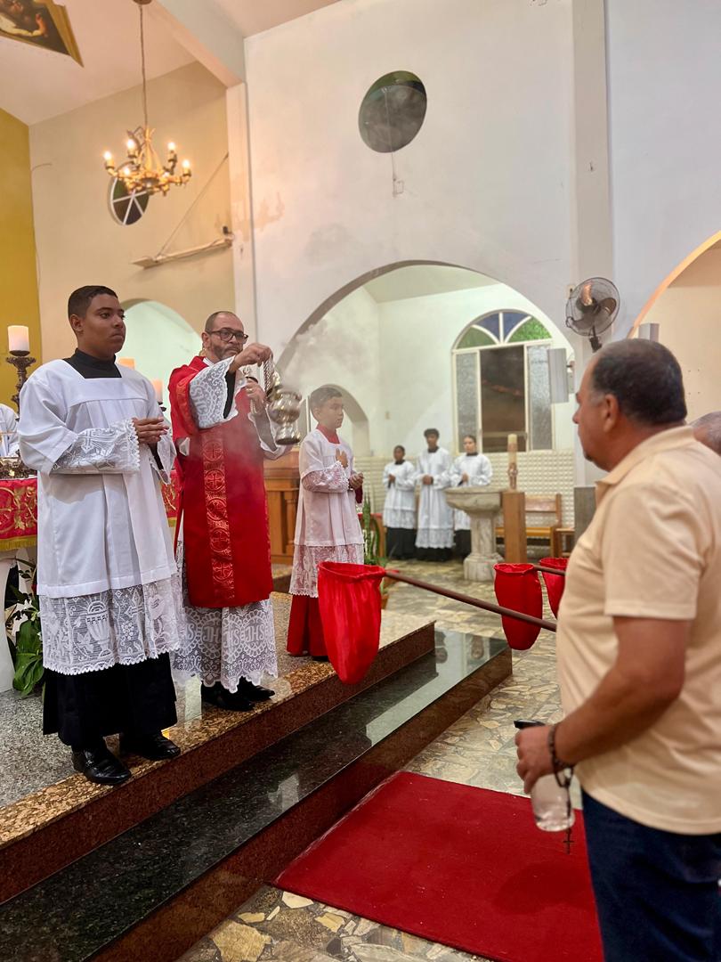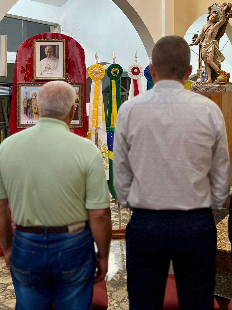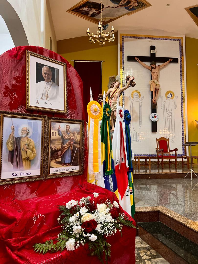 Aos 29 dias do mês de junho de 2025, foi um dia muito significativo para nossa Paróquia, pois num momento cívico contando com a participação do Reverendíssimo Pe. Gustavo da Silva Alves, Pároco desta Paróquia; o Reverendíssimo Diácono Geraldo Carvalho; a Excelentíssima Prefeita, Sra. Samantha Aparecida de Ávila Costa Magalhães; da Vossa Excelência Aldrin Lage De Oliveira, Presidente da Câmara Municipal; a Ilustríssima Senhora Mônica Arcanjo, representando o Conselho de Pastoral Paroquial; o Ilustríssimo Senhor João Camilo, representando o Conselho Econômico Paroquial e uma grande assembleia de fiéis tivemos a grata satisfação de conhecer o brasão da nossa Paróquia e o significado de cada símbolo contido nele e fomos chamados a meditar sobre como estes símbolos podem influenciar nossas vidas diárias e, através deste brasão, a cada 25 de março, data que nos lembra a criação da Paróquia, renovarmos também nosso compromisso com a espiritualidade e os ensinamentos de Maria, reforçando nossa fé e devoção. Padre Gustavo enfatizou que “explorar o significado do brasão da Paróquia São Sebastião é como abrir um livro de histórias repleto de simbolismo e riqueza espiritual”. E, junto à cada símbolo apresentado, reforçava nossa ideia do pertencimento a esta Paróquia abençoada por São Sebastião, nosso padroeiro. Em seguida, participamos da Santa Missa da Solenidade de São Pedro e São Paulo, as duas colunas da Igreja. Agradeçamos a Deus pela presença e atuação do nosso pároco, Pe. Gustavo Silva, que nos ajuda a valorizar cada momento vivido em comunidade e a crescer na fé como filhos Amados de Deus.