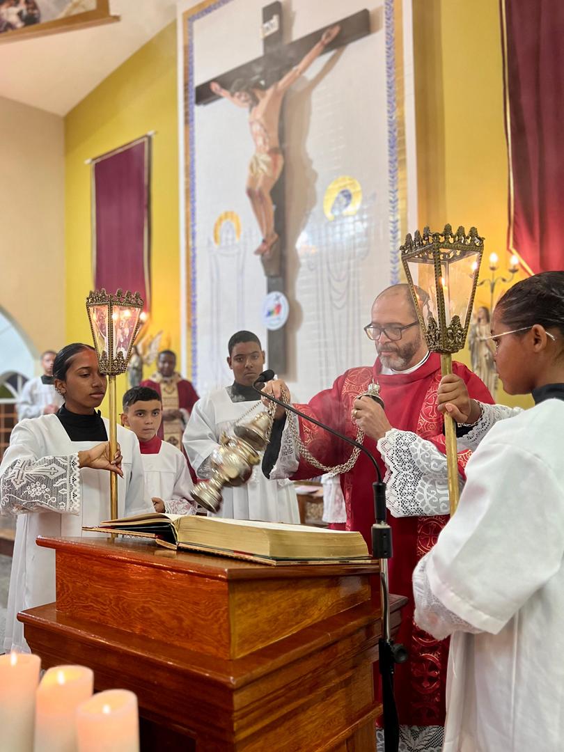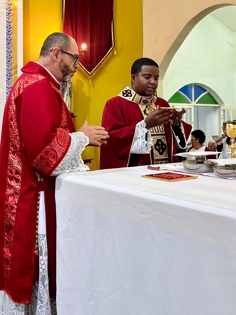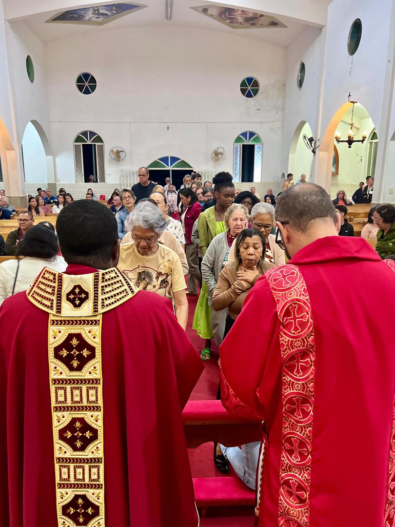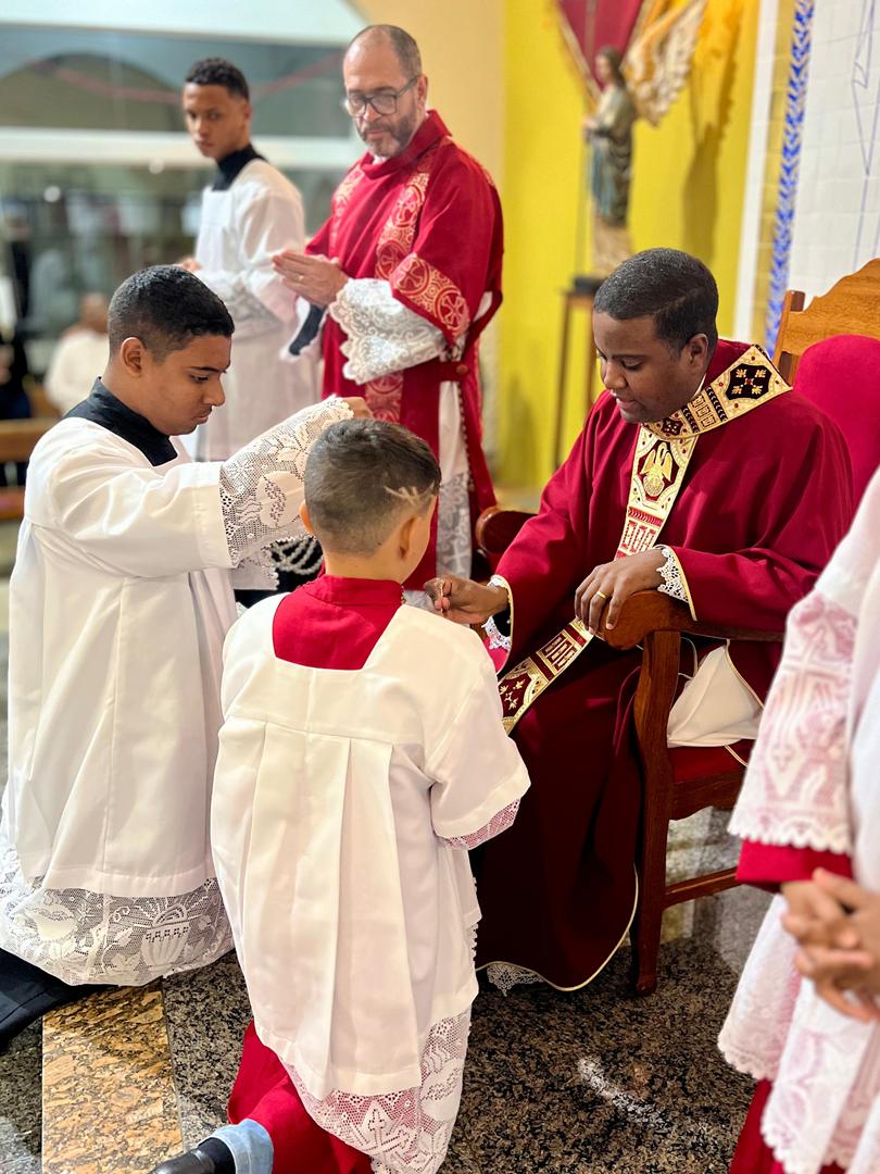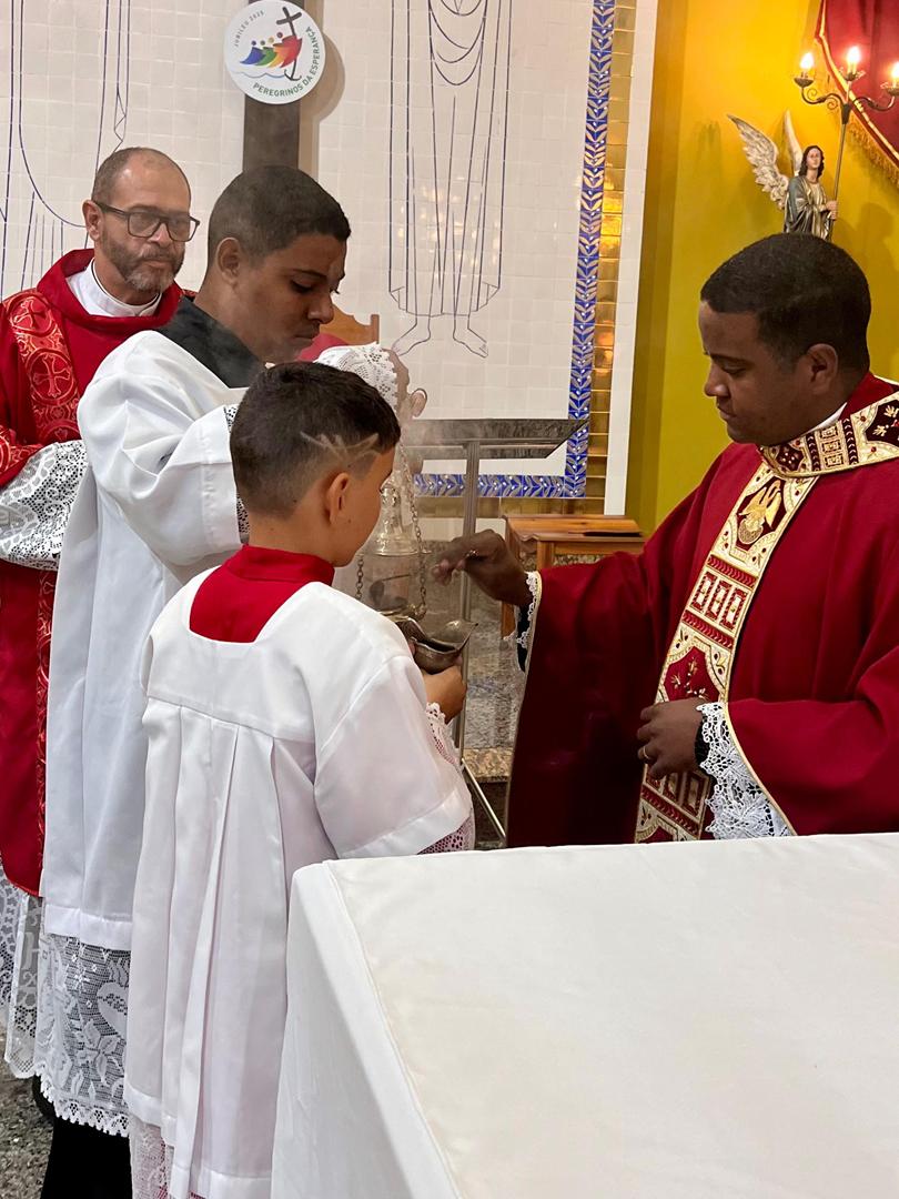 Aos 29 dias do mês de junho de 2025, foi um dia muito significativo para nossa Paróquia, pois num momento cívico contando com a participação do Reverendíssimo Pe. Gustavo da Silva Alves, Pároco desta Paróquia; o Reverendíssimo Diácono Geraldo Carvalho; a Excelentíssima Prefeita, Sra. Samantha Aparecida de Ávila Costa Magalhães; da Vossa Excelência Aldrin Lage De Oliveira, Presidente da Câmara Municipal; a Ilustríssima Senhora Mônica Arcanjo, representando o Conselho de Pastoral Paroquial; o Ilustríssimo Senhor João Camilo, representando o Conselho Econômico Paroquial e uma grande assembleia de fiéis tivemos a grata satisfação de conhecer o brasão da nossa Paróquia e o significado de cada símbolo contido nele e fomos chamados a meditar sobre como estes símbolos podem influenciar nossas vidas diárias e, através deste brasão, a cada 25 de março, data que nos lembra a criação da Paróquia, renovarmos também nosso compromisso com a espiritualidade e os ensinamentos de Maria, reforçando nossa fé e devoção. Padre Gustavo enfatizou que “explorar o significado do brasão da Paróquia São Sebastião é como abrir um livro de histórias repleto de simbolismo e riqueza espiritual”. E, junto à cada símbolo apresentado, reforçava nossa ideia do pertencimento a esta Paróquia abençoada por São Sebastião, nosso padroeiro. Em seguida, participamos da Santa Missa da Solenidade de São Pedro e São Paulo, as duas colunas da Igreja. Agradeçamos a Deus pela presença e atuação do nosso pároco, Pe. Gustavo Silva, que nos ajuda a valorizar cada momento vivido em comunidade e a crescer na fé como filhos Amados de Deus.