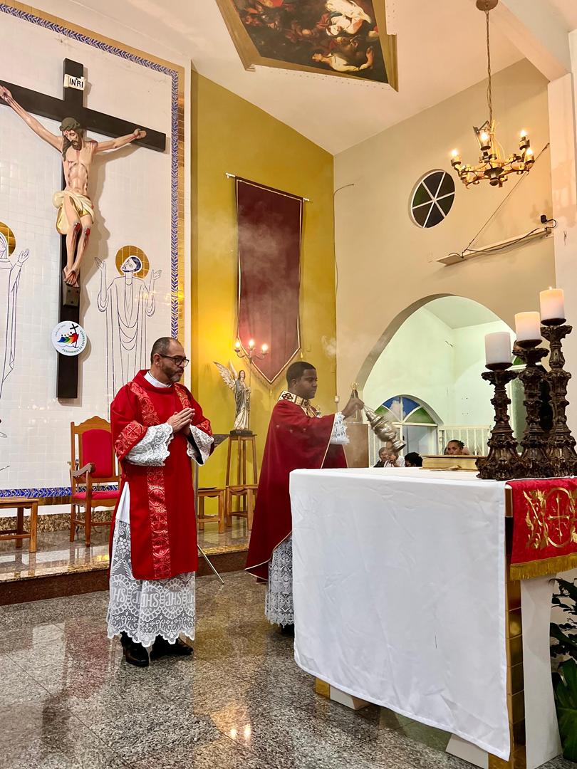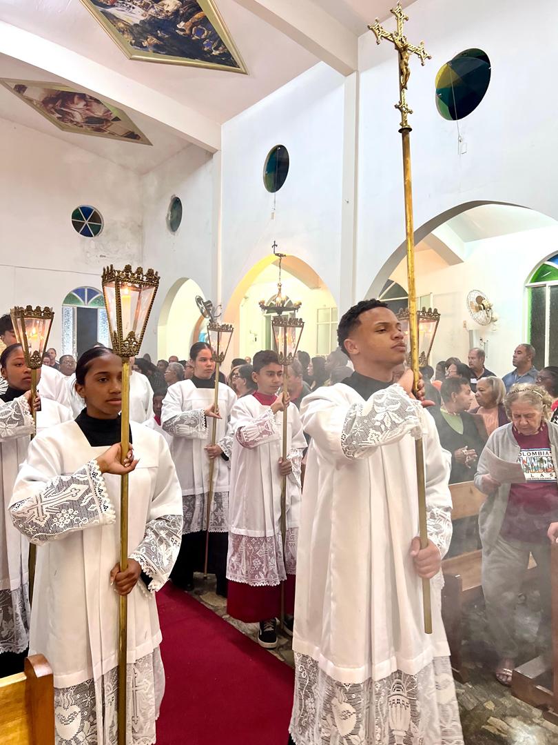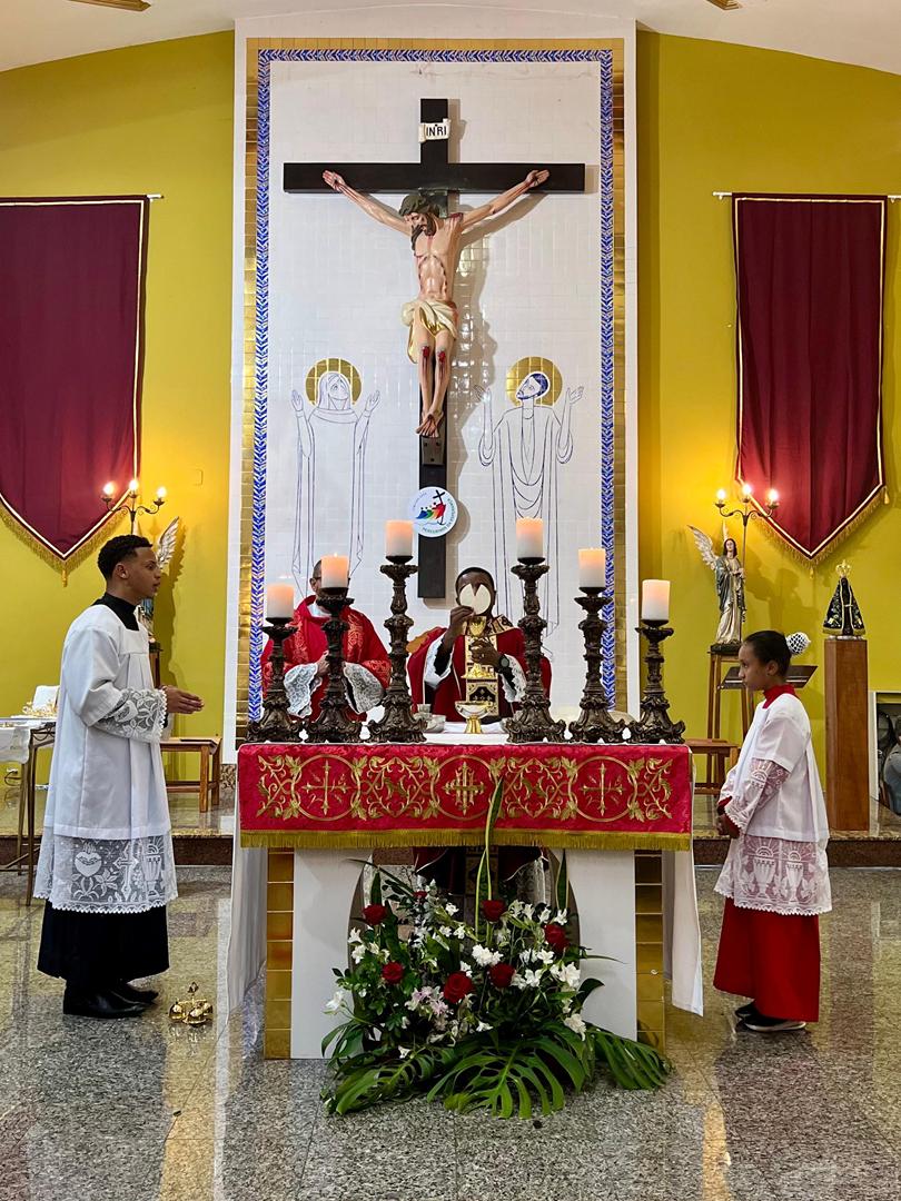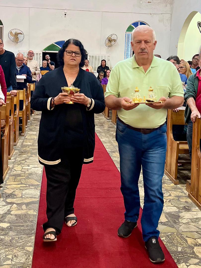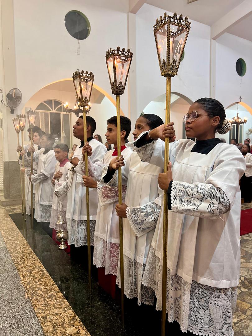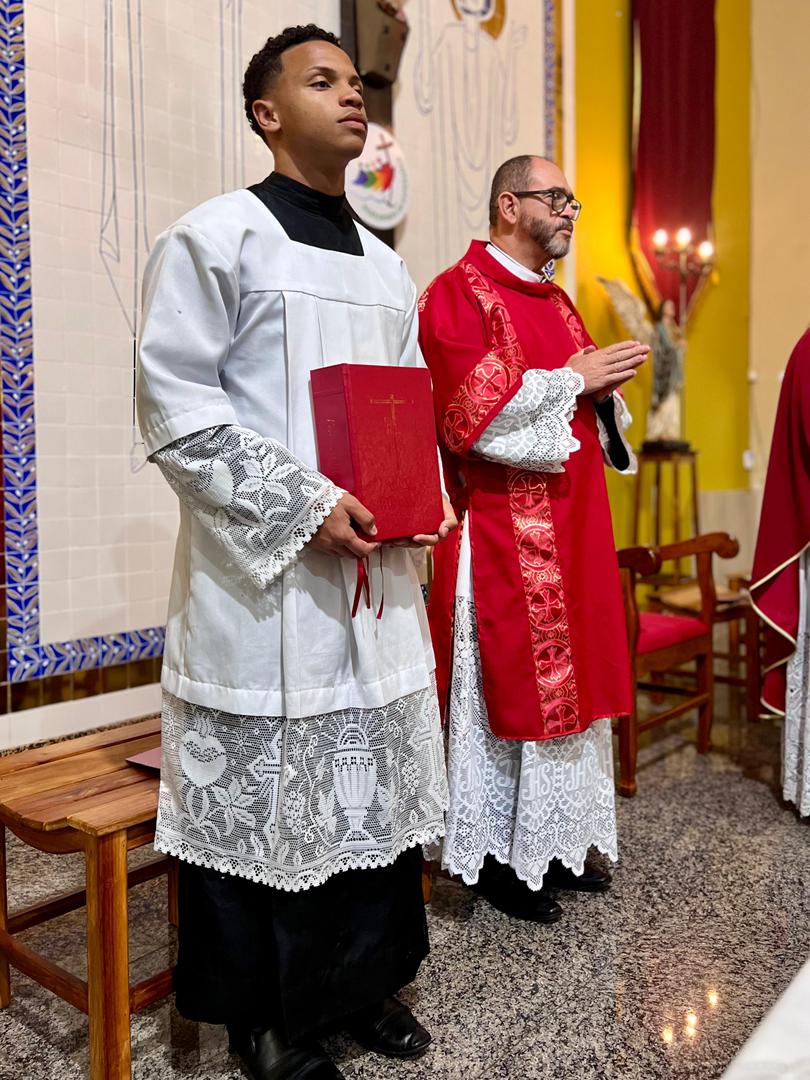 Aos 29 dias do mês de junho de 2025, foi um dia muito significativo para nossa Paróquia, pois num momento cívico contando com a participação do Reverendíssimo Pe. Gustavo da Silva Alves, Pároco desta Paróquia; o Reverendíssimo Diácono Geraldo Carvalho; a Excelentíssima Prefeita, Sra. Samantha Aparecida de Ávila Costa Magalhães; da Vossa Excelência Aldrin Lage De Oliveira, Presidente da Câmara Municipal; a Ilustríssima Senhora Mônica Arcanjo, representando o Conselho de Pastoral Paroquial; o Ilustríssimo Senhor João Camilo, representando o Conselho Econômico Paroquial e uma grande assembleia de fiéis tivemos a grata satisfação de conhecer o brasão da nossa Paróquia e o significado de cada símbolo contido nele e fomos chamados a meditar sobre como estes símbolos podem influenciar nossas vidas diárias e, através deste brasão, a cada 25 de março, data que nos lembra a criação da Paróquia, renovarmos também nosso compromisso com a espiritualidade e os ensinamentos de Maria, reforçando nossa fé e devoção. Padre Gustavo enfatizou que “explorar o significado do brasão da Paróquia São Sebastião é como abrir um livro de histórias repleto de simbolismo e riqueza espiritual”. E, junto à cada símbolo apresentado, reforçava nossa ideia do pertencimento a esta Paróquia abençoada por São Sebastião, nosso padroeiro. Em seguida, participamos da Santa Missa da Solenidade de São Pedro e São Paulo, as duas colunas da Igreja. Agradeçamos a Deus pela presença e atuação do nosso pároco, Pe. Gustavo Silva, que nos ajuda a valorizar cada momento vivido em comunidade e a crescer na fé como filhos Amados de Deus.