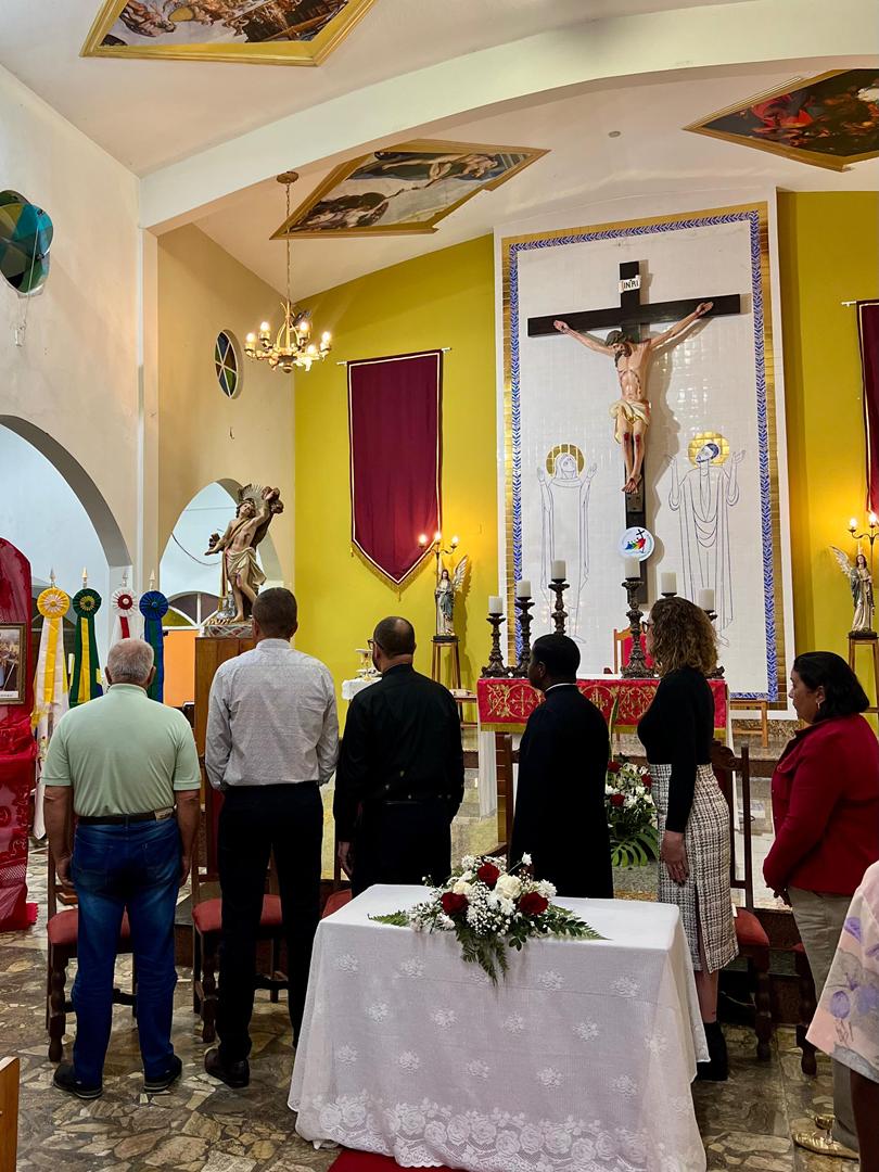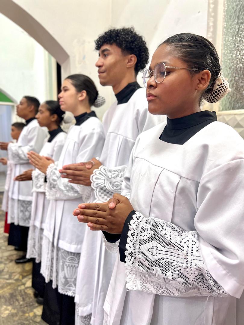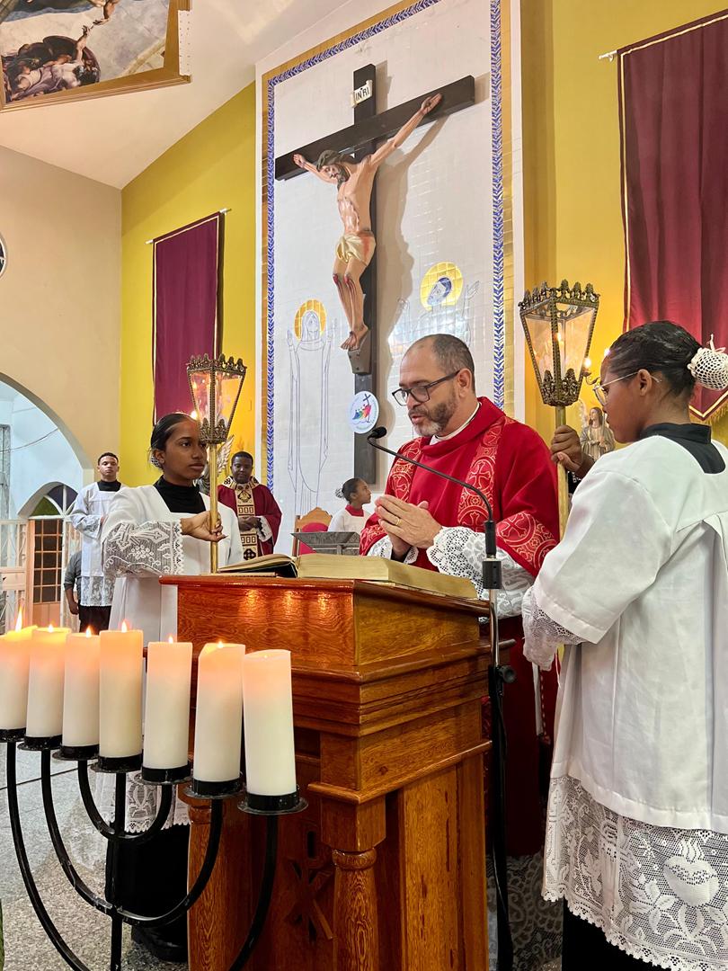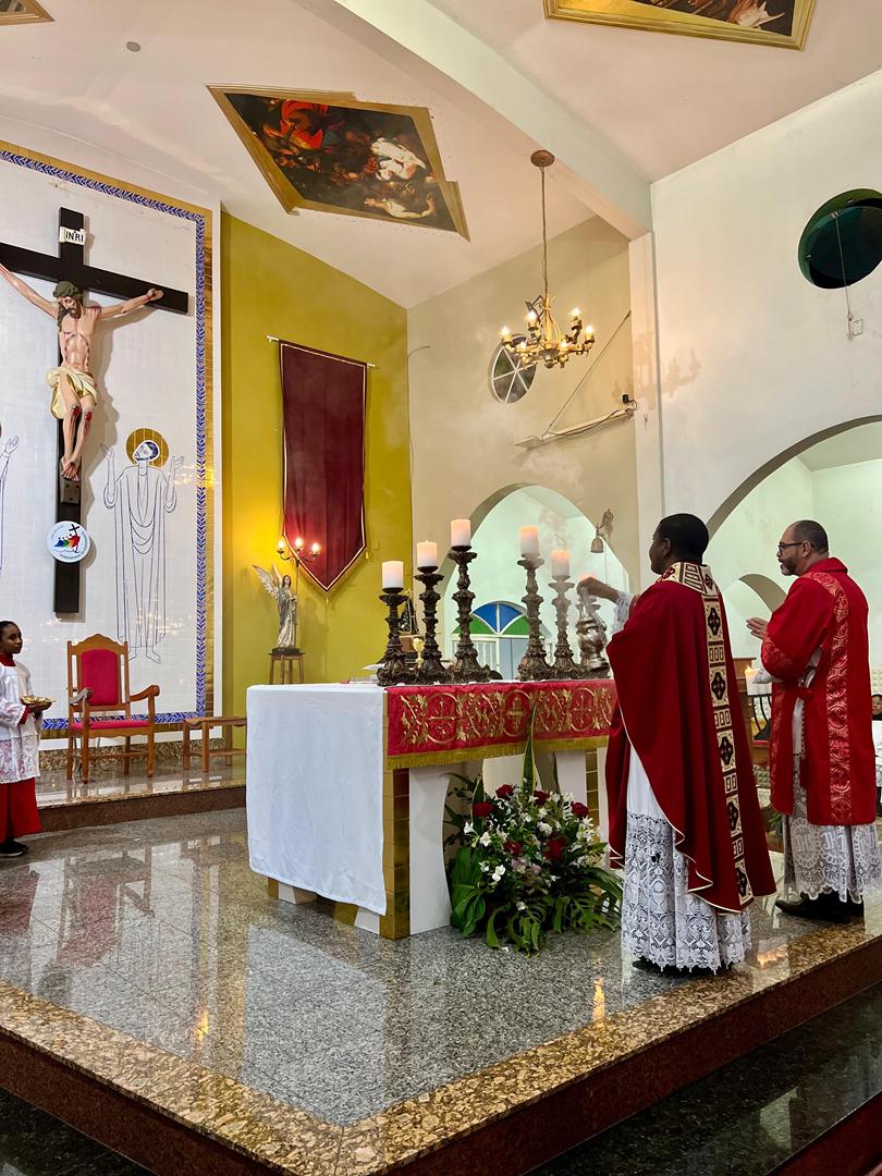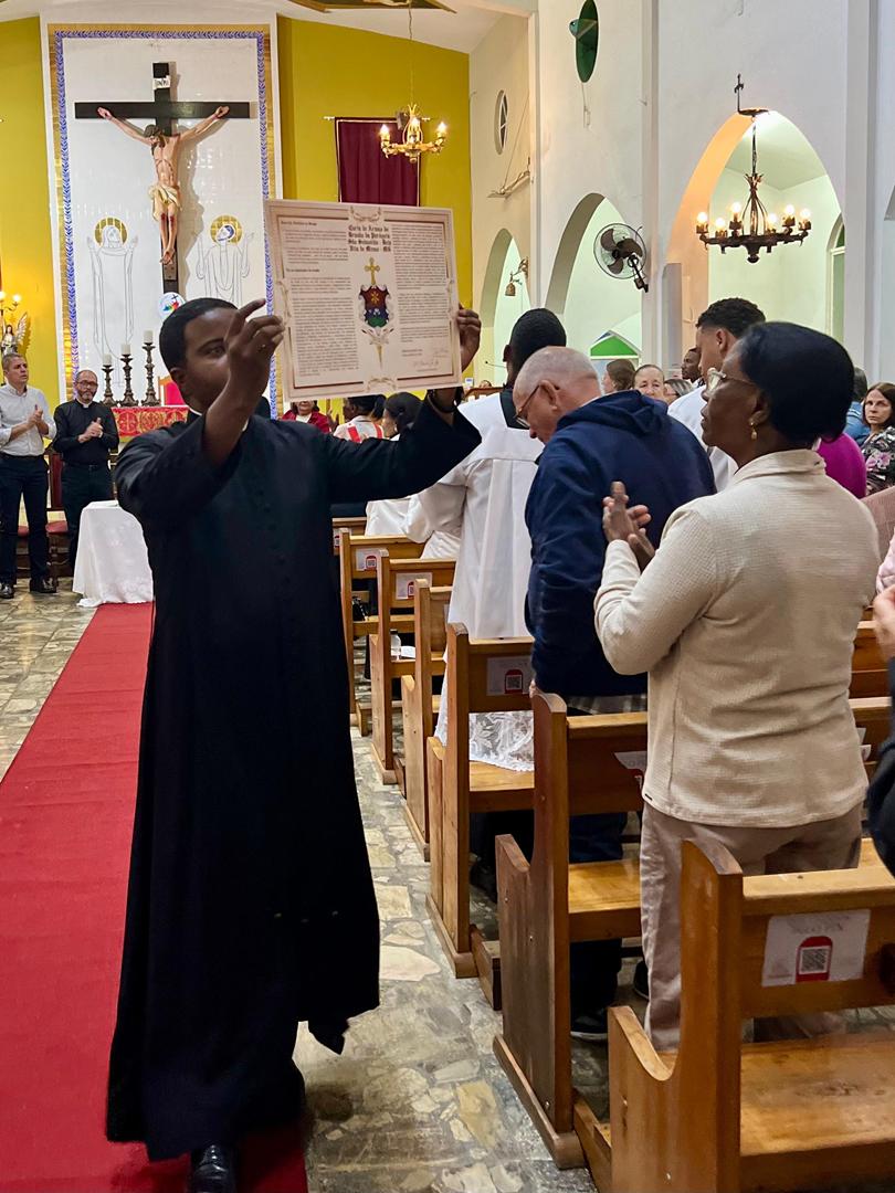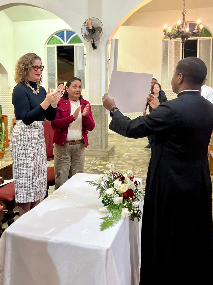 Aos 29 dias do mês de junho de 2025, foi um dia muito significativo para nossa Paróquia, pois num momento cívico contando com a participação do Reverendíssimo Pe. Gustavo da Silva Alves, Pároco desta Paróquia; o Reverendíssimo Diácono Geraldo Carvalho; a Excelentíssima Prefeita, Sra. Samantha Aparecida de Ávila Costa Magalhães; da Vossa Excelência Aldrin Lage De Oliveira, Presidente da Câmara Municipal; a Ilustríssima Senhora Mônica Arcanjo, representando o Conselho de Pastoral Paroquial; o Ilustríssimo Senhor João Camilo, representando o Conselho Econômico Paroquial e uma grande assembleia de fiéis tivemos a grata satisfação de conhecer o brasão da nossa Paróquia e o significado de cada símbolo contido nele e fomos chamados a meditar sobre como estes símbolos podem influenciar nossas vidas diárias e, através deste brasão, a cada 25 de março, data que nos lembra a criação da Paróquia, renovarmos também nosso compromisso com a espiritualidade e os ensinamentos de Maria, reforçando nossa fé e devoção. Padre Gustavo enfatizou que “explorar o significado do brasão da Paróquia São Sebastião é como abrir um livro de histórias repleto de simbolismo e riqueza espiritual”. E, junto à cada símbolo apresentado, reforçava nossa ideia do pertencimento a esta Paróquia abençoada por São Sebastião, nosso padroeiro. Em seguida, participamos da Santa Missa da Solenidade de São Pedro e São Paulo, as duas colunas da Igreja. Agradeçamos a Deus pela presença e atuação do nosso pároco, Pe. Gustavo Silva, que nos ajuda a valorizar cada momento vivido em comunidade e a crescer na fé como filhos Amados de Deus.